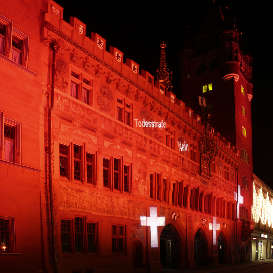 Als Ausdruck seiner Besorgnis über die in vielen Ländern immer noch angewendete Todesstrafe unterstützt der Regierungsrat Basel-Stadt die Aktion von vier Menschenrechtsorganisationen in deren Rahmen das Rathaus mit einem speziellen Lichteffekt beleuchtet wird. Er schliesst sich damit der weltweiten Kampagne "Städte für das Leben – Städte gegen die Todesstrafe" an.