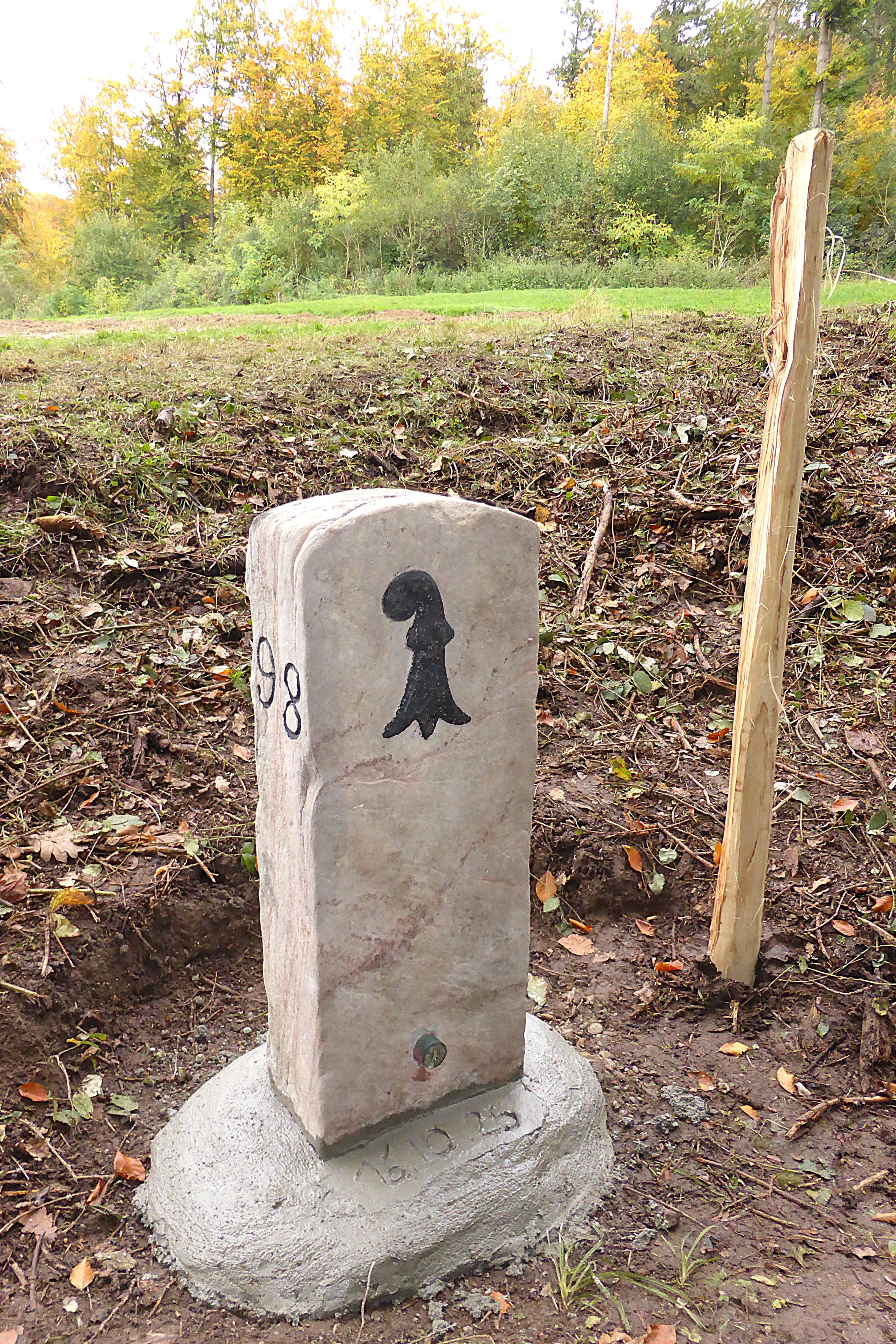 Im Jahr 1842 wurden anlässlich der Festlegung der aktuellen Landesgrenzdefinition mehrere der bestehenden Ecksteine (markieren Knickpunkte) ersetzt und zusätzliche Läufersteine (liegen in der Geraden) in der Hoheitsgrenze ergänzt. Der Landesgrenzstein Nr. 98 ist einer dieser ersetzten Ecksteine. Bei der Begehung der Landesgrenze im Frühling 2025 wurde festgestellt, dass der über 180-jährige Stein knapp über dem Boden gebrochen ist. Der Stein wurde bei der Instandsetzung wieder auf das im Boden einbetonierte Unterteil gesetzt.