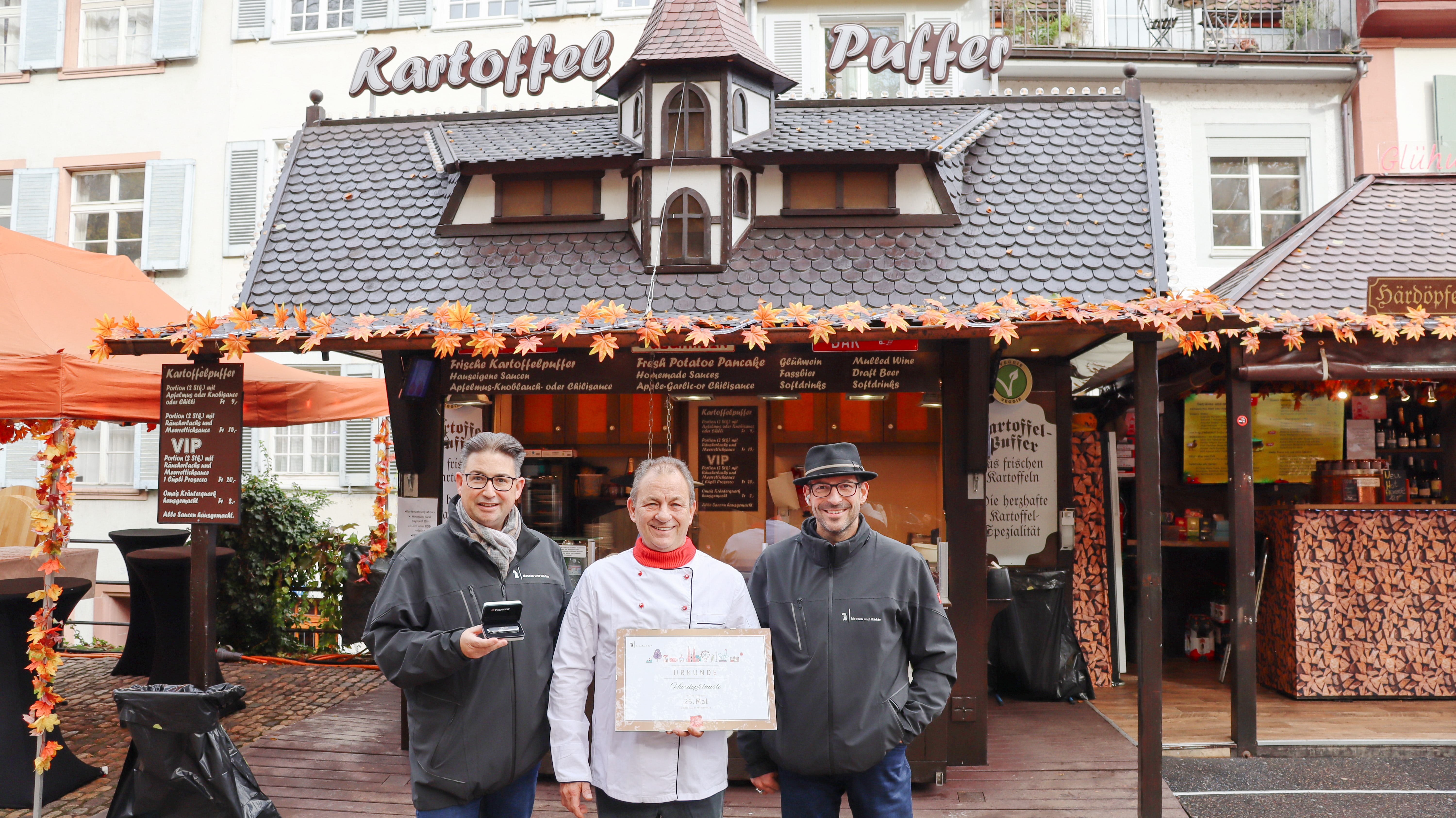 - Das bekannte Härdöpfelhüsli von Ralf Grossfeld auf dem Petersplatz serviert knusprige vegane Kartoffelpuffer mit hausgemachten Saucen, wahlweise mit Lachs. Ergänzt wird das Angebot durch erfrischende Getränke und den beliebten Original Glüh-Gin.