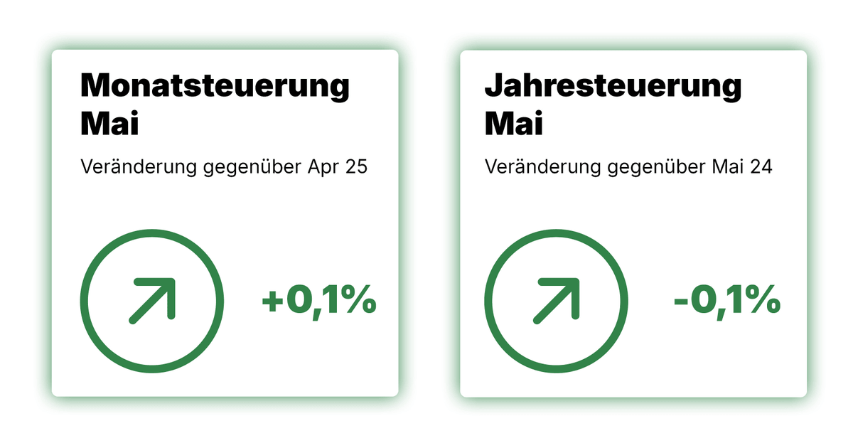 NewsDer Basler Index ist im Mai 2025 gegenüber dem Vormonat um 0,1 Prozent gestiegen und beträgt 106,9 Punkte (Basis Dezember 2020 = 100). Die Jahresteuerung, das heisst die Teuerung zwischen Mai 2024 und Mai 2025, beträgt -0,1 Prozent. Das ist der erste negative Wert seit März 2021; damals hatte die Jahresteuerung ebenfalls -0,1 Prozent betragen.