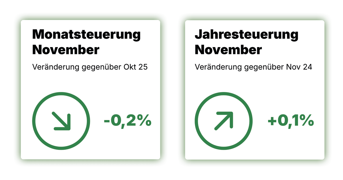 NewsDer Basler Index ist im November 2025 gegenüber dem Vormonat um 0,2 Prozent auf 106,3 Punkte gesunken (Basis Dezember 2020 = 100). Die Jahresteuerung hingegen beträgt 0,1 Prozent. Das Preisniveau ist damit im Vergleich zu November 2024 leicht gestiegen.