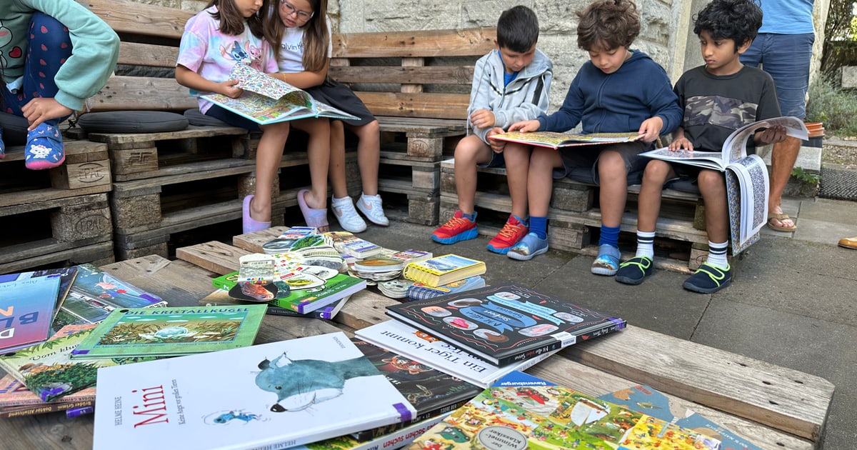 Mit der neu gestalteten Schulbibliothek und dem Lesegarten hat die Primarschule Insel diesen Sommer ein sichtbares Zeichen gesetzt: Lesekompetenz soll nicht nur vermittelt, sondern auch lebendig erfahrbar werden. Im Pausenhof ist dafür eine gemütliche Leseecke mit Paletten und Kissen eingerichtet worden mit einer bunten Auswahl von Comics, Sachbüchern, Rätselheften oder Wimmelbüchern. In jeder Pause, auch im Winter, liegt eine Auswahl an Büchern im Lesegarten bereit. Dieser bietet den Kindern einen unkomplizierten Kontakt zu Büchern und eine Alternative zum sonst eher wilden Treiben auf dem grossen Innenhof. Als ruhiger Rückzugsort schafft sie einen Raum für freies Lesen, Gesellschaftsspiele oder Tandemlesen, wo ältere Kinder mit jüngeren lesen. Ein Mädchen aus der 3. Klasse fragt begeistert: «Darf ich das Buch nach Hause nehmen? Ich möchte es meiner Mutter zeigen.» Für die Initiatorinnen Caroline Stauffer, Sara Gysin und Michèle Baitsch ist das eine Bestätigung, dass sich die neuen Angebote zur Leseförderung bewähren.