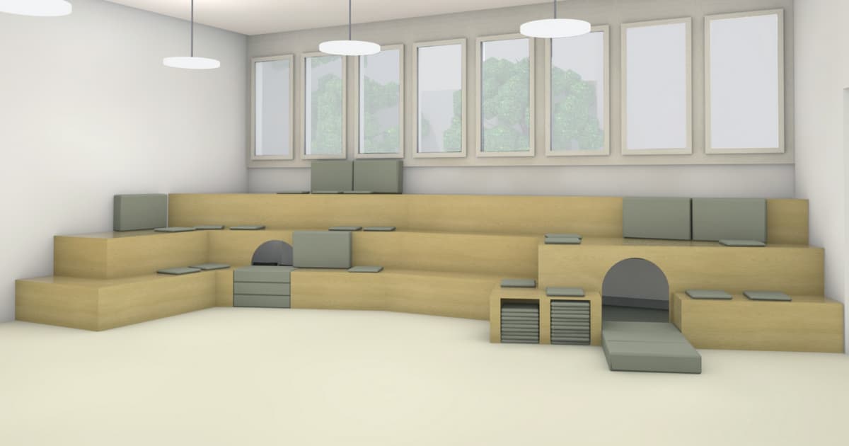 Das Gebäude am Holbeinplatz wird seine Geschichte weiterhin erzählen. «Der Charakter des Hauses aus den 1970er-Jahren bleibt ebenso erhalten wie die Teile der ehemaligen Kapelle mit Sichtbeton. Das verleiht den Räumen eine eigene Atmosphäre», beschreibt Christoph Hewing, Projektleiter beim Erziehungsdepartement, die Besonderheiten des Bauwerks. Die Gesamtsanierung, welche vom Architekturbüro Aebli Zimmermann geplant und umgesetzt wird, hat Anfang Dezember 2025 begonnen und dauert rund zwei Jahre. Sie wird stark auf die Bedürfnisse der Kinder ausgerichtet: Für die Tagesstruktur, die Kindergärten und die Förderräume stehen die unteren vier Stockwerke zur Verfügung, während die oberen weiterhin dem Wohnen vorbehalten sind. Ab Schulstart im August 2027 werden Kindergarten- und Primarschulkinder hier ihren Alltag verbringen. Das ehemalige Kernstück der Kirche wird der Tagesstruktur gehören. Im rund 150 Quadratmeter grossen Aufenthaltsraum ist eine Sitzlandschaft mit Stufen geplant. Von dort soll auch ein direkter Zugang nach draussen möglich sein. Die gestufte Gestaltung schafft Spiel- und Rückzugsmöglichkeiten im Innern. Ergänzt wird das Raumangebot der Tagesstruktur durch drei weitere Gruppenräume, eine Küche sowie einen separaten Bewegungsraum.
